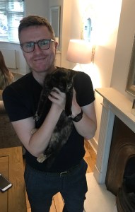 I don’t have a pet yet. Watch this space. I want a dog – well, two dogs actually – and I already have preferred breeds in mind and, yes, names have already been picked out. Sadly I don’t have a garden so want to wait until I do. I always had dogs growing up – much like the family in The Magnificent Sons – and love being around them now. I’m not majorly into cats but friends have them and I don’t mind hanging out with them – how they feel about hanging out with me is another story, of course. So, here is a picture of me with my friends’ cat Harvey. Harvey was named so by my godsons after Harvey ‘Two Face’ Dent from Batman, because she has a stripe down her face. They have a black one too, called Bruce – Batman’s real name, of course – because all black cats kind of look like Batman, don’t they? I see Harvey and Bruce a lot, as they belong to my closest friends. In fact, The Magnificent Sons is dedicated to them, although I did forget to mention the cats in the dedication – maybe for the paperback, eh?
